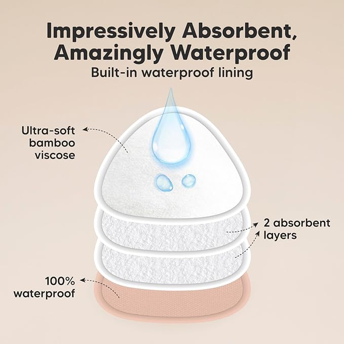 • Amazing Absorbency - Each Contour reusable nursing pads for breastfeeding comes with 3 layers of soft and ultra absorbent materials, and an additional waterproof layer to protect your clothes from breast milk leaks.