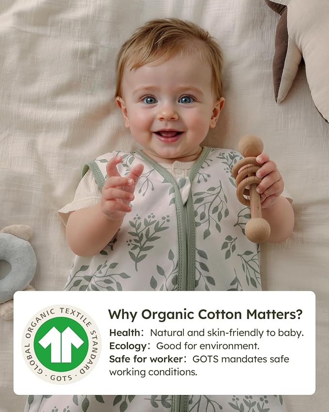 • 100% Organic Cotton: Soft, breathable, and gentle on sensitive skin, our sleep sack is made from high-quality cotton. Certified by the Global Organic Textile Standard (GOTS), we prioritize your baby’s comfort and safety.