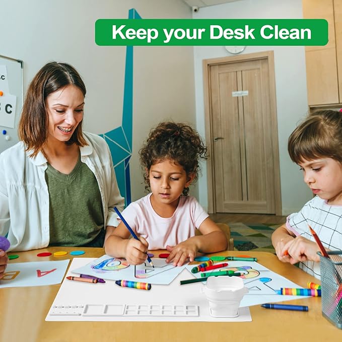 • [LARGE SILICONE MAT] - The size of the silicone artist mat with a water cup is 20ร—16 inches. The slightly raised edge keeps everything on the art mat.
