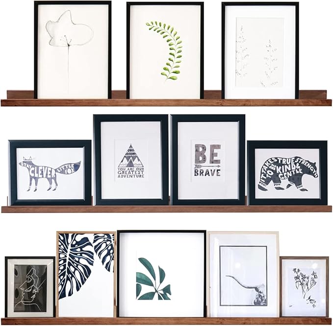 • Well Designed Floating Shelf: The size of photo ledges is 48 in x 3.7 in x 1.6 in.Made of solid wood with a smooth, water-resistant surface. However, the color of the wood may vary slightly due to different wood grains.
