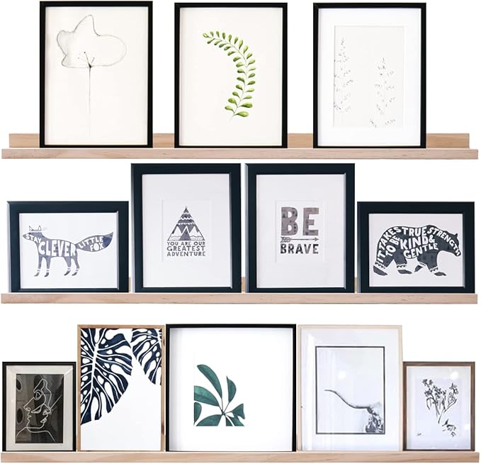 • Photo Frame Display Shelf: Used to display photo frames that record your beautiful memories, so that you can always see them at home. The photo shelves have a front lip design, so you don't have to worry about the frame falling. You can also use it to display pictures, paintings, and artwork to create a beautiful home decoration.