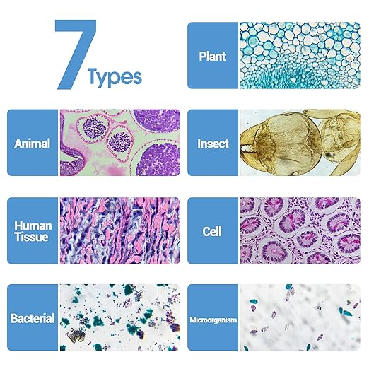 • Great biology slides set with a wide variety of interesting specimens, for beginner to practice microscope, to entertain and educate.