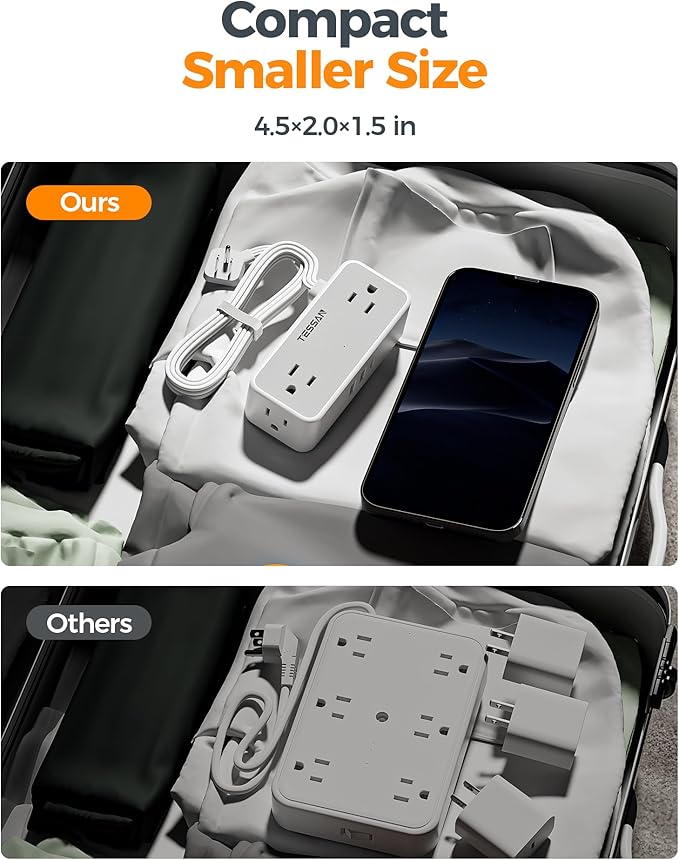 • 900J Surge Protector Outlet: Power strips with surge protection are equipped with short-circuit protection and over-current protection. This flat outlet extension cord can protect your electrical appliances