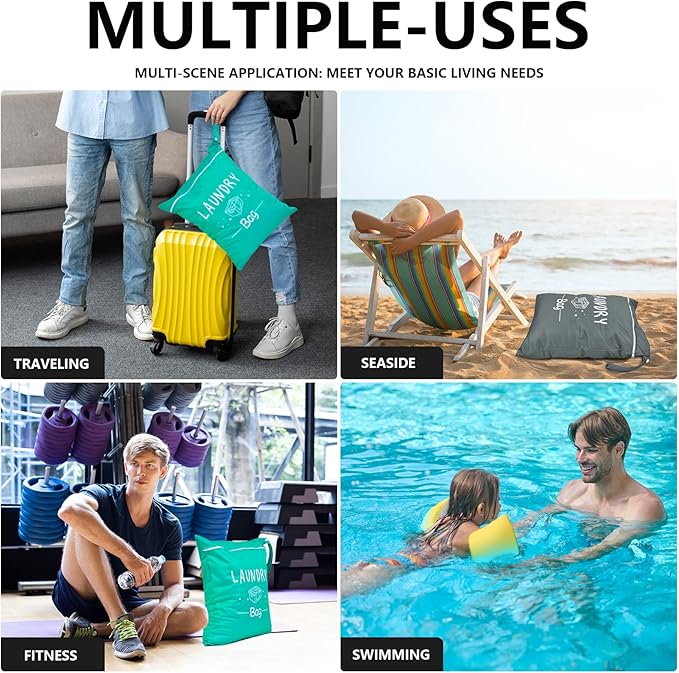 • 【Multifunctional Usages】This washable wet dry bag with zipper for dirty clothes is suitable for so many different uses or make thoughtful presents, you can use the travel bags for swimsuits, diapers and dirty clothes, nice for the beach, school, daycare, camping and many other uses.