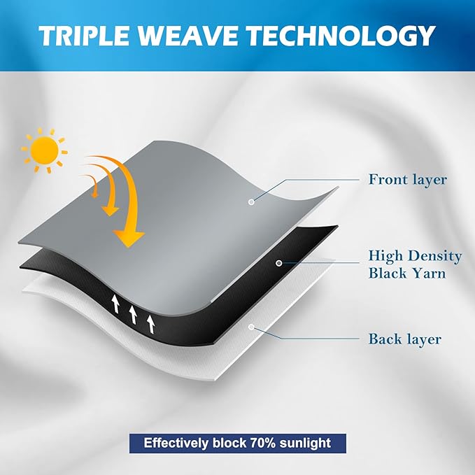 • Grommet Construction, Good To Go: Thread trimmed and wrinkle-free, ring (1.6-inch inner diameter) fits easily with standard curtain rods. All sets for you to put them up right away. Triple weave blackout fabric, room darkening curtains, protect your furniture, floors.