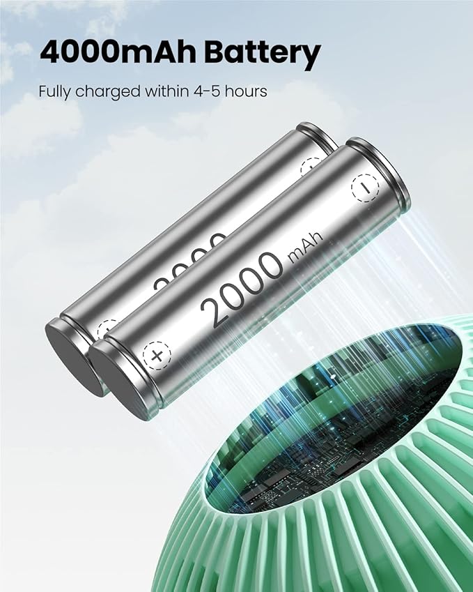 • 3-12 Hours Working and 4.5 H Fast Charging: This portable fan has large cell capacity; The rechargeable fan lasts 3-12 hours depending on the 4 speeds, and fully charged within 4.5 h; The small fan is charged by a quality USB Type-C port