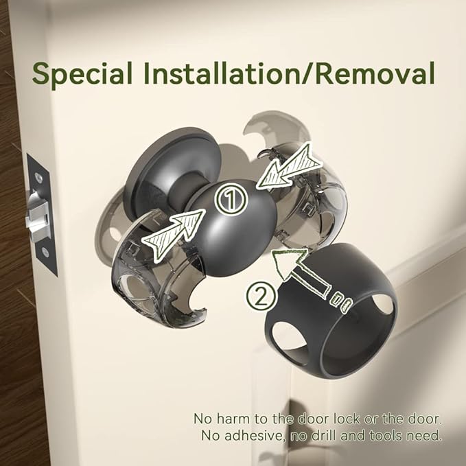 • Special Installation/Removal---Special installation design makes adults easy to install or remove with only hands,no harm to the door lock or the door.No Adhesive, no drill and tools need.
