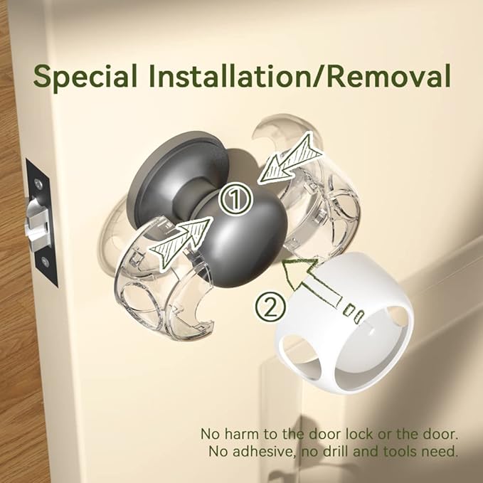 • Special Installation/Removal---Special installation design makes adults easy to install or remove with only hands,no harm to the door lock or the door.No Adhesive, no drill and tools need.