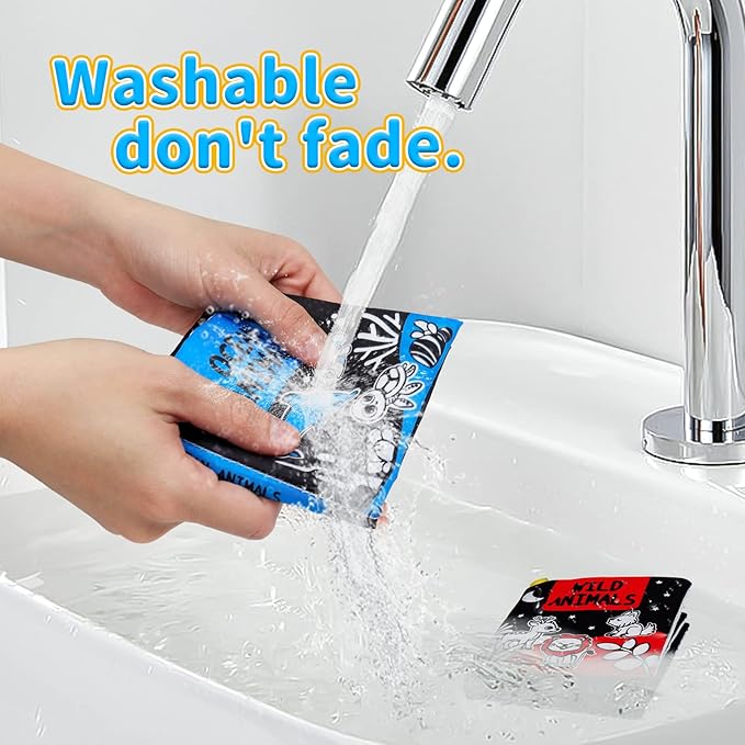 • CARRY IT EVERYWHERE: This soft baby book set is washable and no fading, a perfect bath toy for babyโ€™s bath time. You can hang these soft books on car seat, stroller and crib. An ideal newborn developmental toy for 0 month above