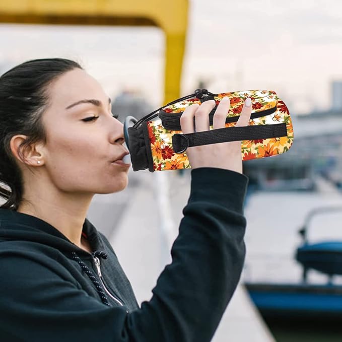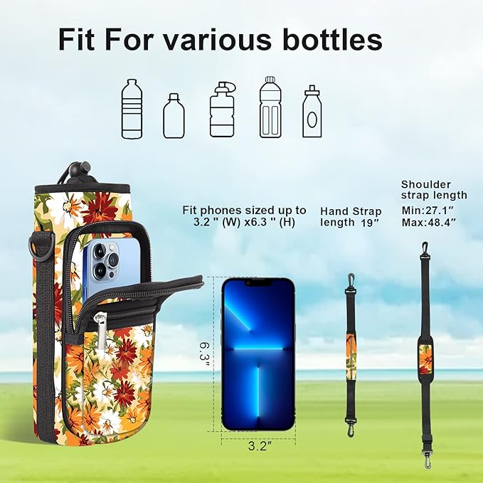 25/32/40/64oz Water Bottle Bag Holder Carrier-Insulated Crossbody Sling Case Sleeve with Strap & Pockets for Men Women Gym Cycling Travel Walking Hiking Camping