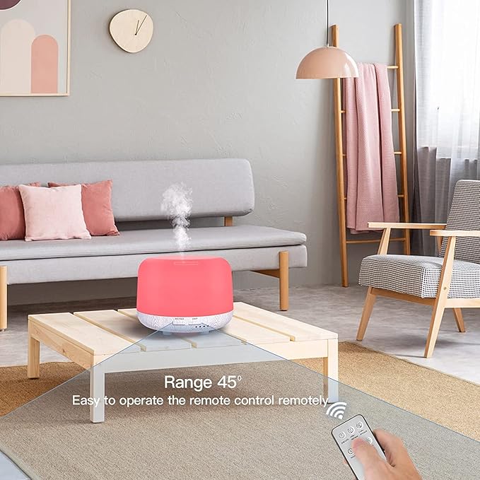 • 【Remote Control & Ultrasonic Technology】The Aroma therapy diffuser with a remote.When you are watching TV or do yoga, you can control the scented oil diffuser by the remote easily.when you travel you can also take the frangrance defuser to hotel for humidification.Using ultrasonic technology,the infuser with essential oils produces a dry scent air for home quiet.Remote switched BIG/SMALL fog for large room or small room.