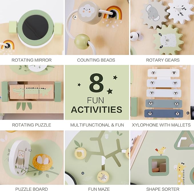 • Montessori-Inspired Developmental Support - The built-in toys and activities on the walker provide endless entertainment for your little one. From shape sorters to rolling beads, there are plenty of engaging elements to keep them entertained and curious. Suitable for both boys and girls, this walker features a charming and colorful design that appeals to young children