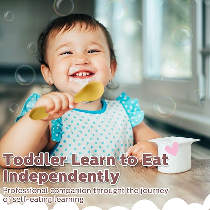 • Practical usages: baby feeding supplies can conducive to self feeding ability for baby, and the comfortable and flexible spoon and fork can also relieve baby's teething pain, babies can chew them to massage their gums