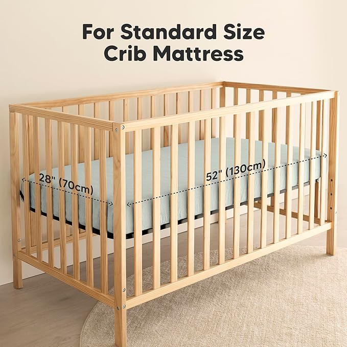 • 2-Pack Fitted Crib Sheets Neutral - KeaBabies Lyra Muslin Crib Sheets for baby girls & boys are perfectly sized standard crib mattress sheets at 52" x 28" x 3-8"(height). These soft crib sheets are made with 100% organic cotton (GOTS-certified).