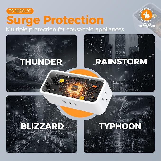 • Surge Protector Outlet: This extension cord surge protector with 900J surge protection can protect your expensive electrical appliances from damage by lighting, surges and spikes
