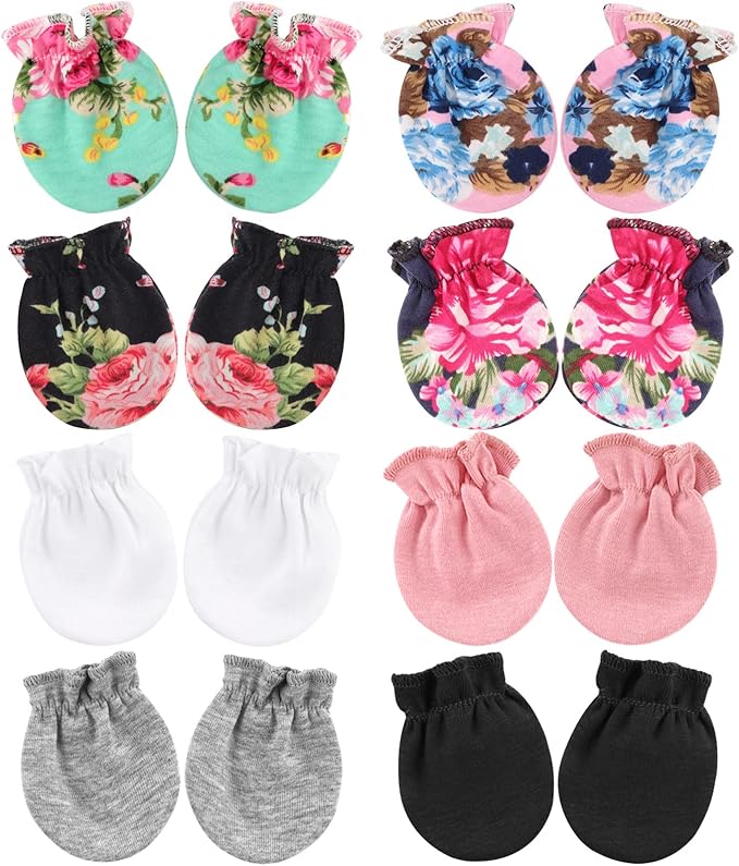 • PACKAGE QUANTITY: You will get 8 pairs of newborn baby mittens in different colors, which are easy to match and offer enough quantity for daily replacement and daily wear, you can also share the cotton mittens with the babies of your friends and family.