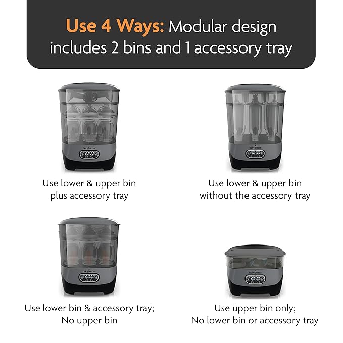 • MOST MODULAR 3-LAYER DESIGN: Use 4 different ways to meet your needs – Only Sterilizer Dryer with large lower bin, shorter upper bin and unique accessory tray