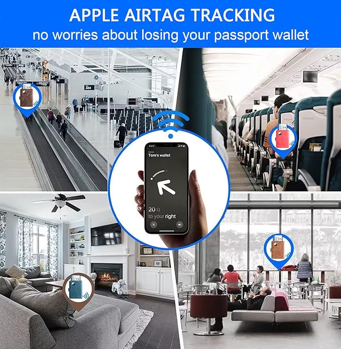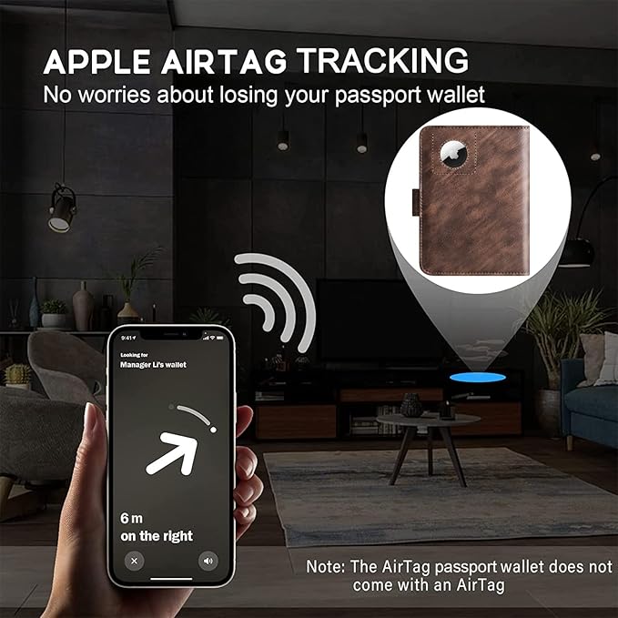 • PASSPORT AND AIRTAG HOLDER COMBO - The built-in holder for Apple Air Tag combine passport wallet and AirTag ideally to make sure you never lose your passport wallet again. Misplaced or lost your passport wallet? Keep track of and see where you last had it alongside friends and devices in the Find My app. The AirTag passport wallet does not come with an Airtag.