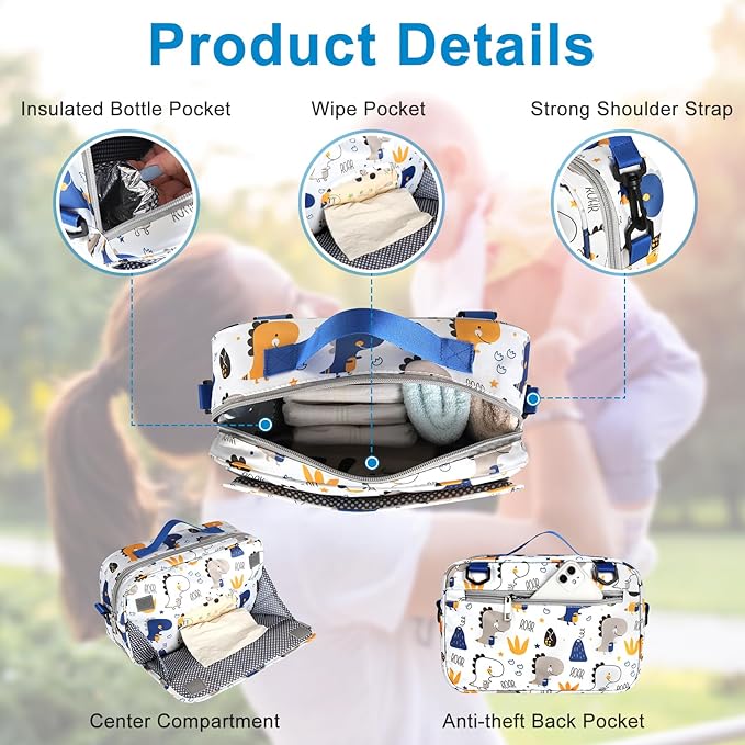 • Multi Structure: Designed with 1 insulated cup holder for baby bottle; Large pocket for storage baby diapers, wipes, toys etc. Convenient wipe opening for easy access of wet wipes ; The back pocket convenience for place cell phone, keys. wallet etc .