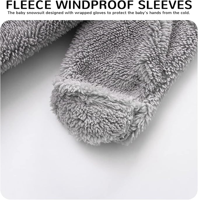 • ❤♥Design: Baby fleece snowsuit jacket warm one-piece jacket, full-cover zipper design to protect the baby from harm, one pull to the end, it is convenient for the baby to change diapers, the flip-up gloves can keep the baby warm and energetic at the same time, the bear ear one-piece cap makes the baby Avoid cold winds outdoors while increasing your baby's charm.