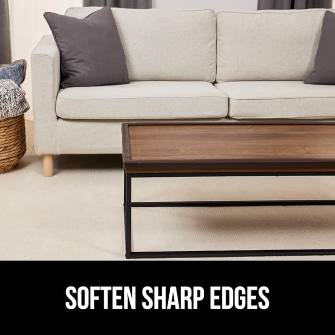 GORILLA GRIP Baby Proof Corners and Edges for Furniture, Kid Proofing Adhesive Table Corner Protectors, Heavy Duty Soft Rubber Foam Protection, Includes 8 Protective Safety Guards, 18 Feet, Brown
