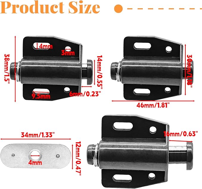 • Durable Material: The shell of the magnetic touch latch is made of ABS material, strong and stable, wear-resistant and durable. High quality magnets and iron sheets provide strong suction and prevent them from falling off easily.