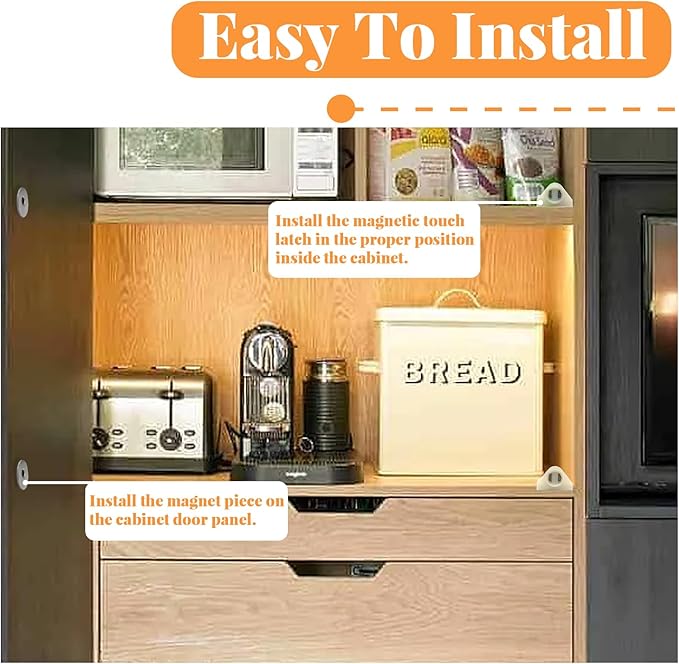 • Durable Material: The shell of the magnetic touch latch is made of ABS material, strong and stable, wear-resistant and durable. High quality magnets and iron sheets provide strong suction and prevent them from falling off easily.