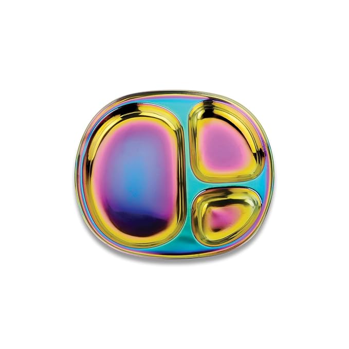 Ahimsa Stainless Steel Kids Plates - Divided Toddler Plates, Pediatrician Designed, Non Toxic Toddler Plate, BPA Free & Dishwasher Safe (Rainbow Single)
