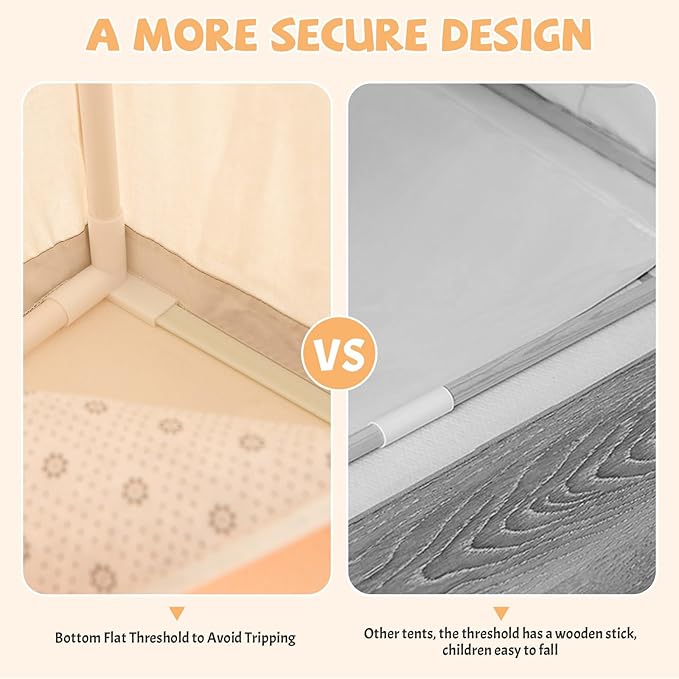 • ✨ANTI-TRIP DESIGN:Our children's tent is different from other tents in that the door is designed to be invisible threshold. Tent bottom close to the ground, children in and out of the tent will not trip or fall, very safe and reliable. Generally, the threshold of the tent door is a stick or a round pipe. When the children get in and out, they are likely to get wrestling.