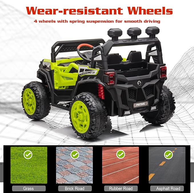 • 24V BATTERY POWERED 4WD RIDE ON UTV- Equipped with 24V 7Ah rechargeable battery and 4 powerful motors, this ride on UTV is powerful enough to provide a long using time. The 4 wear-resistant wheels with spring suspension can provide a smooth driving with the speed of 1.85-3.1mph on different terrains