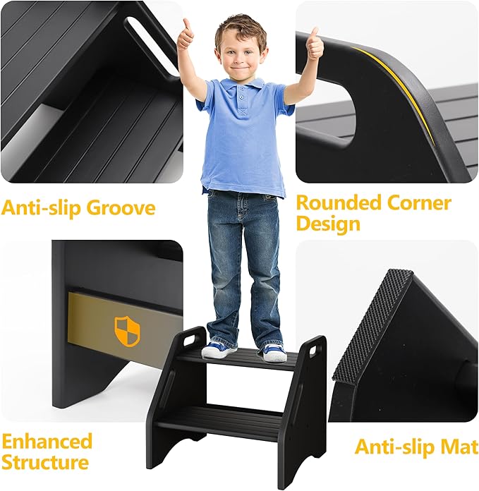 • PROVIDE SAFETY AND CONVENIENCE FOR KIDS: The top of AMBIRD step stool for kids adds a unique non-slip strip design that allows children to stand more stable on top of the step stool with handle to ensure that children do not slip; Also increased the side armrests to help children more easily on the potty step stool; This makes the two step stool more stable and convenient