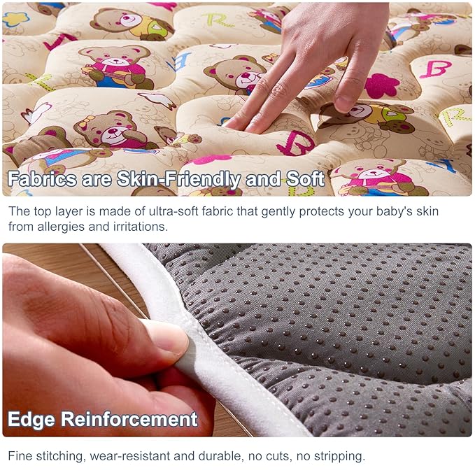 • 【Non-slip, thick and comfort】 The back side of the 36x36 play mat for made of anti-slip material, and the bottom backing is silicone dots. It is thicker than other play mat. It prevents babies from causing pain when they fall or bump.