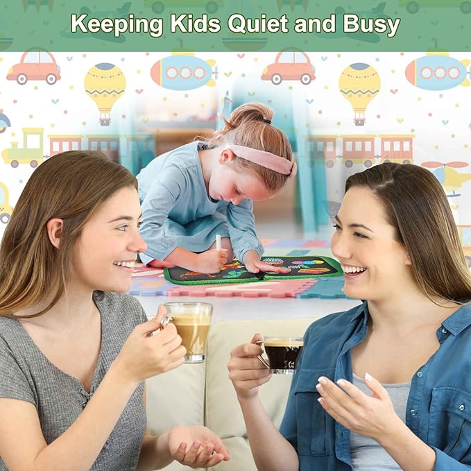 • ๐ŸŽจReusable Magic Coloring Book--Our kids coloring book is made of washable material, when your child has finished drawing 14 pages, just wipe the drawing pages with a damp cloth or paper towel and they can be reused.