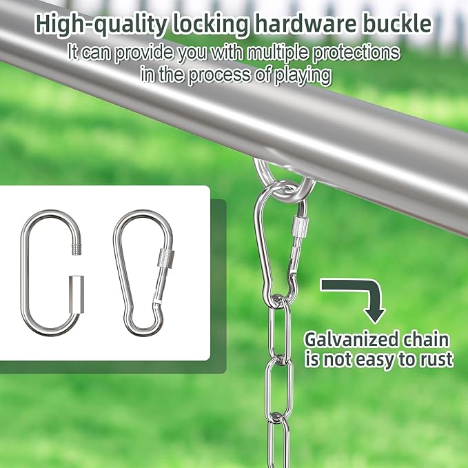 • Rustproof chain: Each galvanized chain is 66 inches long. 28 inches of the chain are covered with thermoplastic coating to prevent corrosion and rust. This completely eliminates any damage that may be caused by the chain. The thermoplastic coating is made of something good for surroundings, which is soft and comfortable to the touch and provide extra protection for children's fingers.