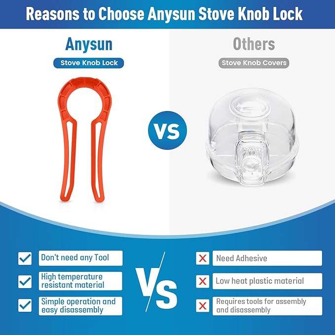 • Keep your kids safe: Use the Anysun stove knob cover lock. In this way, the baby does not open the gas stove switch to avoid accidents. Our functional design stove knobs effectively prevent babies from opening gas stoves to protect children from burns, scalds, gas leaks, and other accidents.