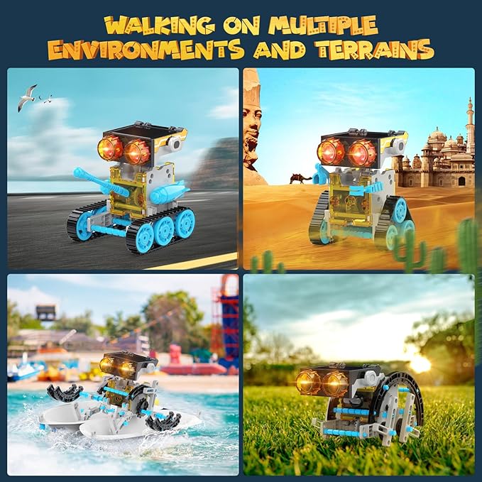 • 2 Power Source Modes-Wesfuner solar robot toys design 2 kinds of power source modes, solar panel and battery on robot head. Teach kids about problem-solving skills and creativity, educational and practical benefits, instilling knowledge, skills, and values that contribute to a greener and more sustainable future. If no sunlight, install a AAA battery (not included) inside the robot head and play indoors