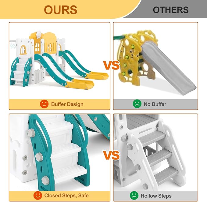 • 【Deluxe Double Slide】 The double slide design encourages children to slide together, they raced down the slide and compete for the champion. Kids can enjoy the fun of competition, cultivate friendships, and promote social interaction and sense of cooperation.