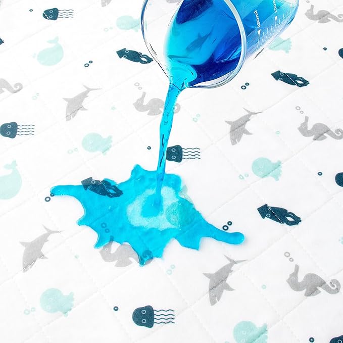 • Machine Washable: Machine washable on gentle cycle. Tumble dry on low heat or line dry. SPRINGSPIRITโ€™s waterproof crib mattress protector portable features blue ocean inspired by vigorous and adorable pattern, which brings friendship with nature.