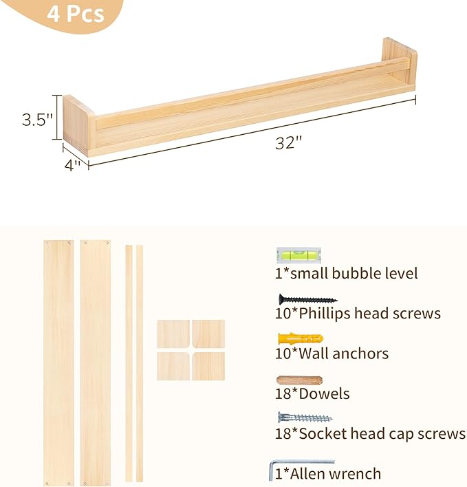 • Durable & High-Quality: Made of solid pine wood, these floating shelves are built to last. They'll provide a stylish and practical storage solution for years to come, making them an excellent addition to nursery decor and any room throughout your home
