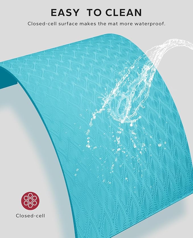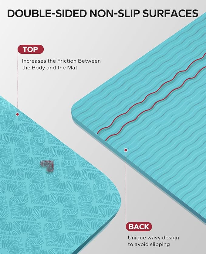 • 𝐃𝐨𝐮𝐛𝐥𝐞-𝐒𝐢𝐝𝐞𝐝 𝐍𝐨𝐧-𝐒𝐥𝐢𝐩 𝐃𝐞𝐬𝐢𝐠𝐧: Our extra wide yoga mat features a double-sided non-slip surface to keep you stable and secure during your practice without worrying about slipping or sliding. The unique wave pattern on the bottom enhances grip on a variety of surfaces, ensuring your mat stays securely in place even during the most challenging yoga poses. Note:Not for use on carpet