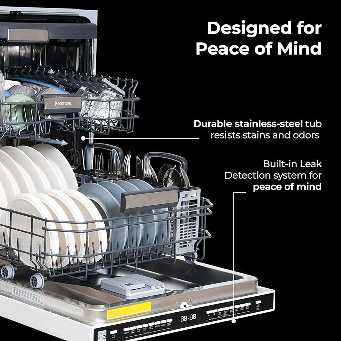 Kenmore 22-14622 24" Built-in Dishwasher-Quiet Tub with TurboDry, Leak, & SmartWash Soil Detection-15 Place Settings-49 DBA-Energy Star Certified, 24.61"D x 23.55"W x 33.88"H, White