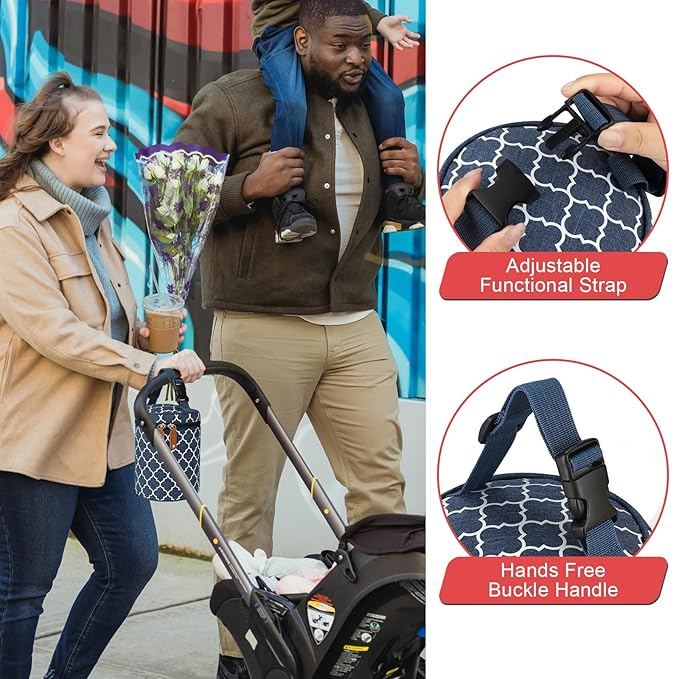 • DETACHABLE BUCKLE DESIGN: The detachable buckle is designed for hanging on a baby stroller or car seat. Fits for any stroller or pet Stroller. You can also attach it to diaper bag, back seat of car, or take it as a small tote bag.