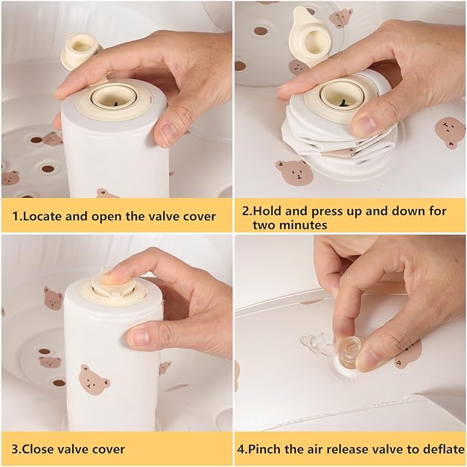 • 【EFFORTLESS OPERATION】: Our inflatable baby feeding chair inflates swiftly in just 3 minutes using the convenient built-in pump. Designed with leak-proof technology, simply pinch the valve for deflation. Post-deflation, the chair folds neatly for compact storage, ideal for travel, camping, or any outdoor adventure.