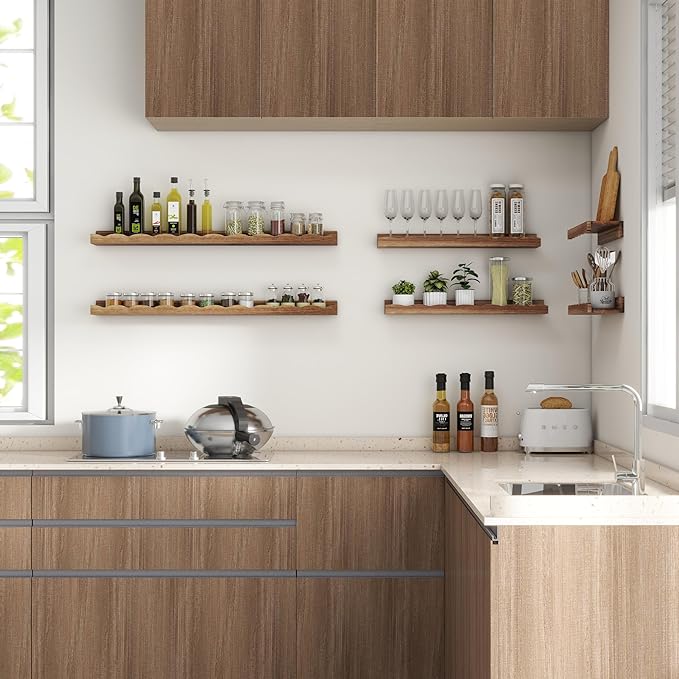 • 【Easy Installation & Breeze Disassembly】These rustic and versatile shelves are conveniently sold in sets of 4, already assembled for your convenience.Installing them is a breeze - simply open the carton box and follow the instruction manual to hang them securely.When it comes time to disassemble, you can easily remove the screws without any hassle.
