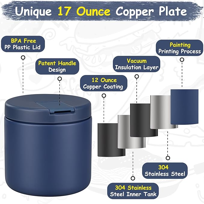 • Upgrade to 12 OZ Capacity: Bigger capacity can hold more food for children. The stainless steel soup thermal bottle is a double wall, with a vacuum in the middle, has good insulation performance, with a wide mouth design that is easier to clean.
