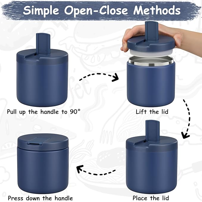 • 100% Leak Proof:Our food thermo comes with a thick silicone gasket. It is full sealed. So you can toss it in your bag or insulation bag without worrying about spills. Wide mouth design are also very easy to clean.