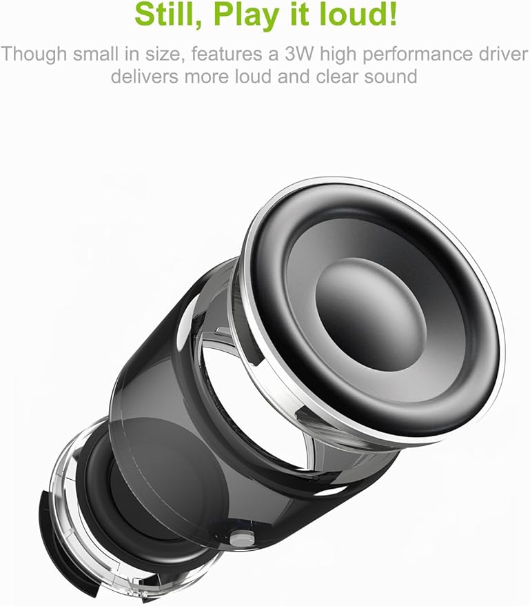 • SIMPLE YET STYLISH DESIGN - our vision was to make a small wireless speakers with bluetooth that is just a speaker, so you can use it anytime, anywhere. We gave up functions such as a microphone, 3.5mm jack and unnecessary buttons, leaving one silicone button (Hold to switch on/ off, one-tap to pause, double-tap or triple-tap to switch songs), a perfect gift.