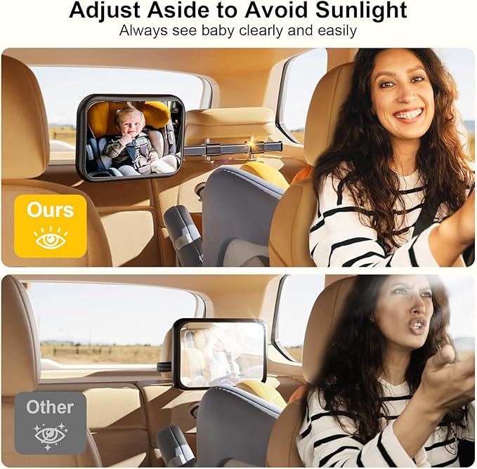 • [Safe Shatterproof Mirror] The baby car mirror has shock-absorbing frame with anti-cracking coating, passed the 100,000 Crash test and has high quality certification. Even in the most critical situations, the car mirror for baby will never break, and there is no need to worry about hurting the baby in daily use.
