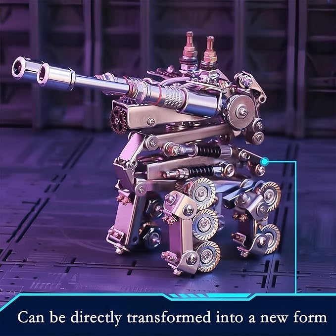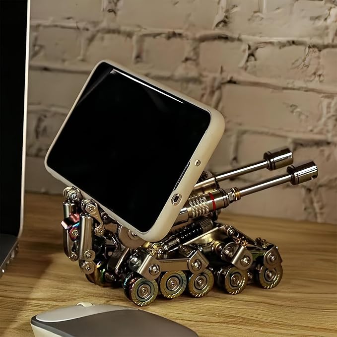 • Design Highlights : This mechanical metal tank can rotate the turret 360 °, with a multi angle folding body that can be directly deformed into various new forms, or can be transformed into a desktop phone stand. After assembly, the size is 5.9x3.55x2.36 inches, which is very suitable for office desktop decoration or home decoratio