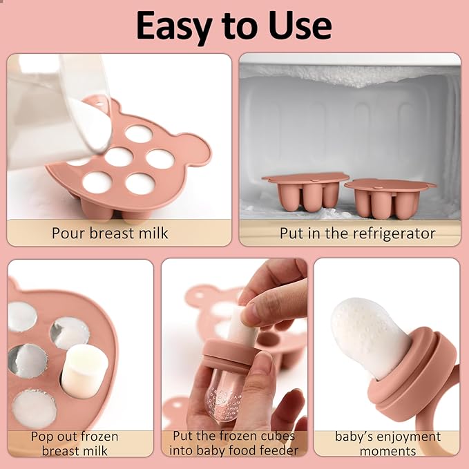 • [Food Grade Silicone - No Need to worry about Material] The Bear baby food storage containers and fruit pacifier feeder are made of 100% food-grade silicone, ensuring that they are safe for baby food storage and feeding. They are free from BPA, PVC, and phthalates, providing peace of mind for parents who prioritize their baby's health and safety. Flexible and naturally non-stick silicone body makes popping food cubes out of your baby ice cube tray a breeze.